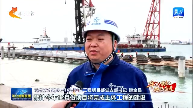 沧州黄骅港9号10号泊位工程项目部党支部书记 黎全昌:预计今年12月份项目将完成主体工程的建设,每年可为周边及腹地企业降低物流成本约1.65亿元。